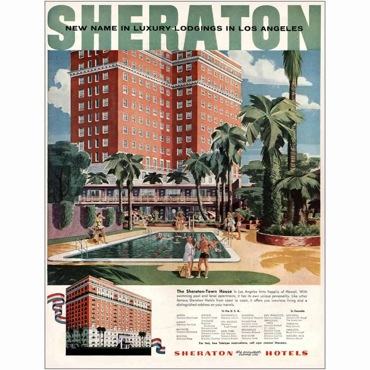 Originally completed in 1929, the Sheraton Town House is a distinguished example of late Beaux-Arts classical architecture and one of the most prominent luxury apartment buildings of its era in the fashionable Wilshire District. Converted into a luxury hotel in 1937, it became a social landmark of Los Angeles—home to the storied Zebra Room nightclub, where Elizabeth Taylor celebrated her first marriage.